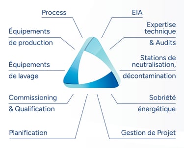 Planification et suivi des jalons, Gestion du budget et des ressources. Pilotage des activités (Fabrication, Livraison, Installation, Mise en service, Commissioning & Qualification).